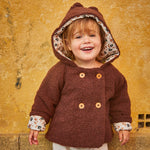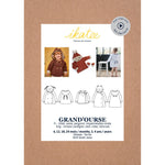 Grand’ourse est un patron de gilet, veste, imperméable ou peignoir mixte pour bébé. Il est disponible dans deux longueurs, avec ou sans capuche. Des oreilles de lapins et d’ours peuvent être ajoutées. Le vêtement peut être doublé ou bien gansé avec un biais.